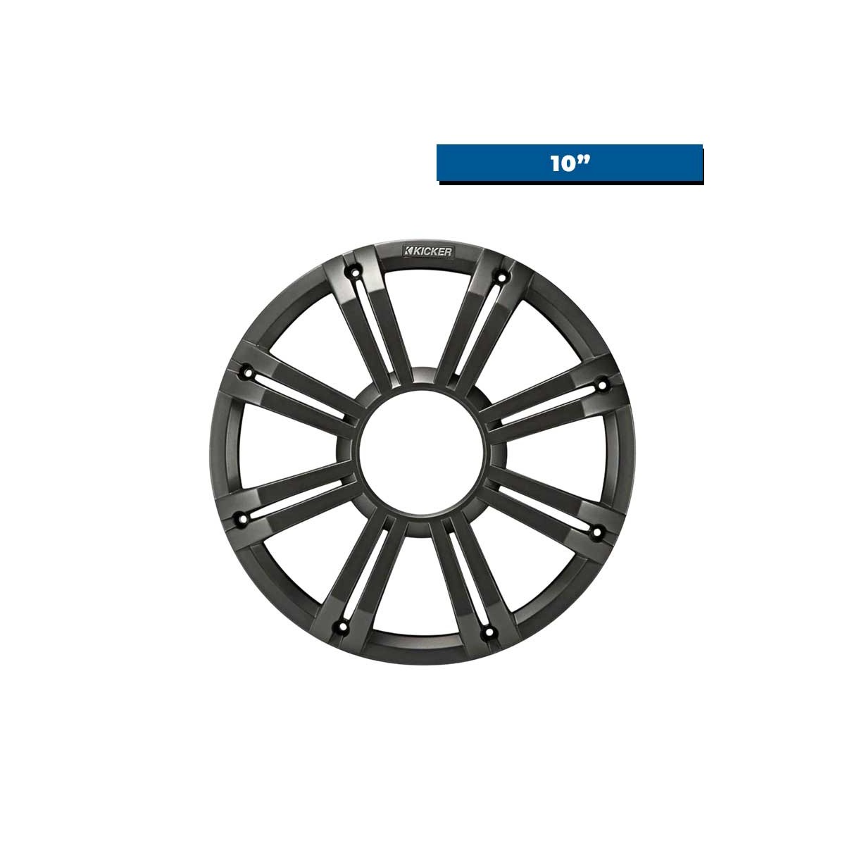 La griglia grigia con sistema LED per diffusori da 10"-è resistente all'acqua dolce e salata. È stata progettata appositamente per adattarsi ai subwoofer da 10" Kicker.