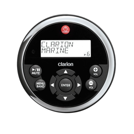 L'MW1 Clarion Marine è un telecomando marino impermeabile progettato per controllare a distanza le unità principali Clarion CMV1, CMD6, CMD8 CMS1, M303 e M704.