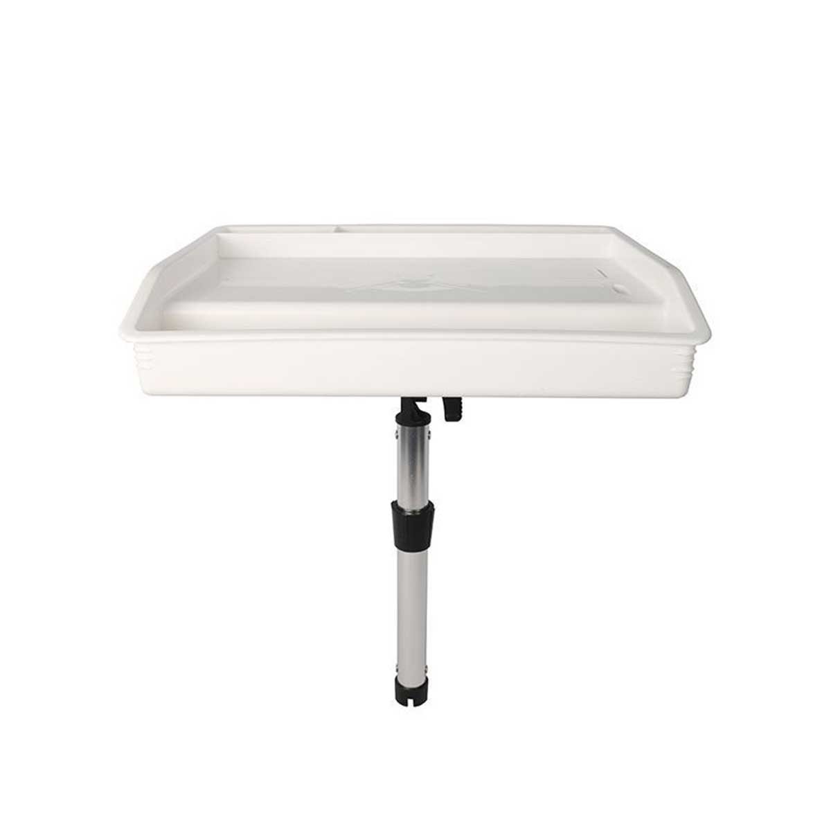 Indispensabile per preparare le esche e tagliare i pesci, questo tagliere combina stabilità, superficie utile e sicurezza. Il polipropilene trattato con raggi UV non si deforma, non assorbe gli odori e può essere sciacquato in un attimo. La maniglia in alluminio si inserisce in un portacanne-e la regolazione mantiene la tavola orizzontale, indipendentemente dall'angolo del tubo.
