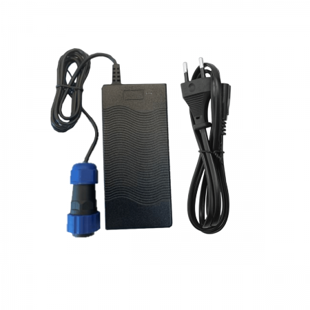 Ricarica i tuoi motori elettrici ThrustMe Kicker o Cruiser con il caricabatterie standard ThrustMe da 110–230 V.