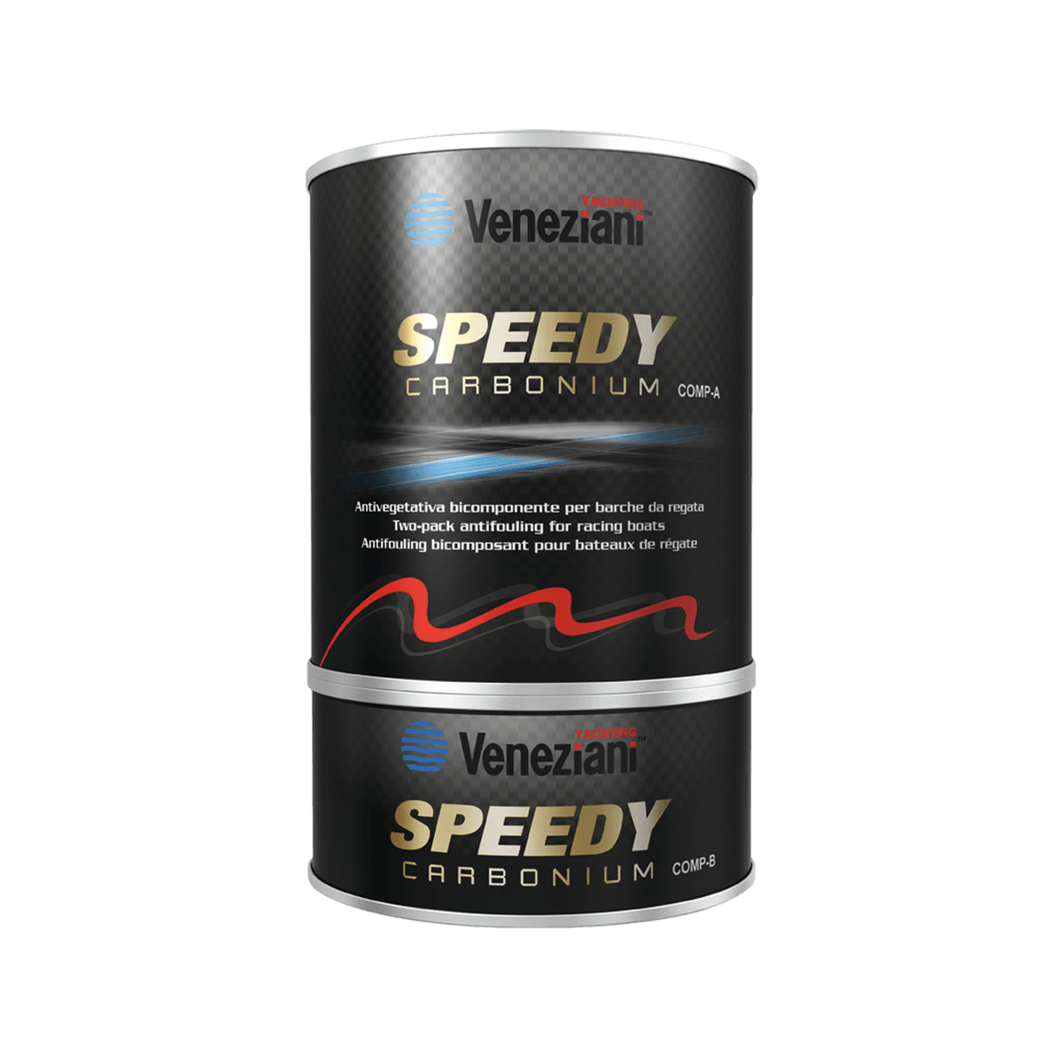 Speedy Carbonium (Veneziani) antivegetativa nera al carbonio in flacone da 0,75 litri, progettata per incrementare le prestazioni di barche da competizione, a motore e a vela. Formula bicomponente-per uno scafo molto liscio. Copertura di circa 10 m2/l. Ideale per ridurre le incrostazioni e mantenere la velocità e la planata.
