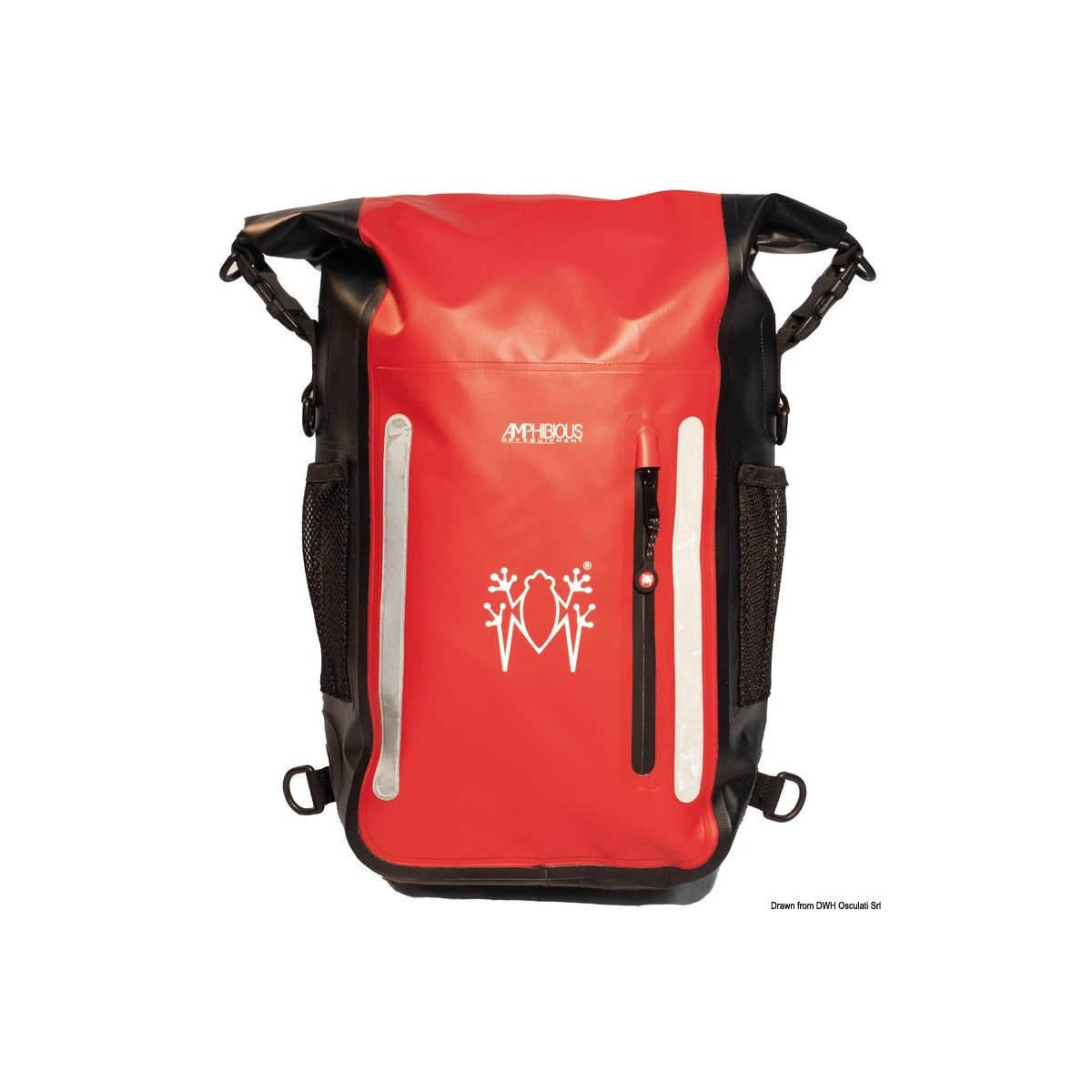 Chiusura rapida, schienale imbottito con tessuto reticolare traspirante, supporto lombare rimovibile, profili riflettenti, tasche impermeabili con zip, tasche in rete.