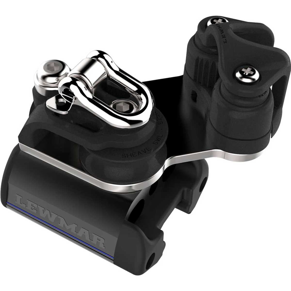 Il fermascotte Lewmar Ocean T0 con puleggia singola, anello e galloccia è ideale per fissare il fine corsa del carrello della scotta, guidando e bloccando in modo pulito una cima di trimmaggio.