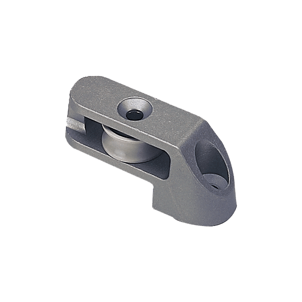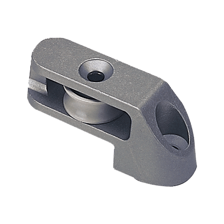 Il tappo terminale della rotaia Lewmar per binario a T da 32 mm è regolabile e funge da fine corsa. Blocca il carrello impedendogli di uscire dal binario e incorpora una puleggia di controllo per il passaggio di una cima di comando, per regolare più facilmente la posizione del carrello e della bugna.