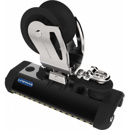Il carrello per genoa scorrevole Lewmar HTX T1 con puleggia singola e ringot a babordo, ideale per regolare il punto di pescaggio in modo fluido e preciso sul binario.