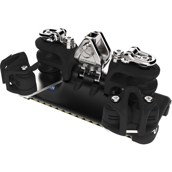 Il carrello per genoa Lewmar HTX T2 con sfere in Torlon, giunto a ginocchiera, doppia puleggia, anelli e gallocce. Assicura una scotta precisa e uno scorrimento fluido sul binario, anche in presenza di carichi pesanti.