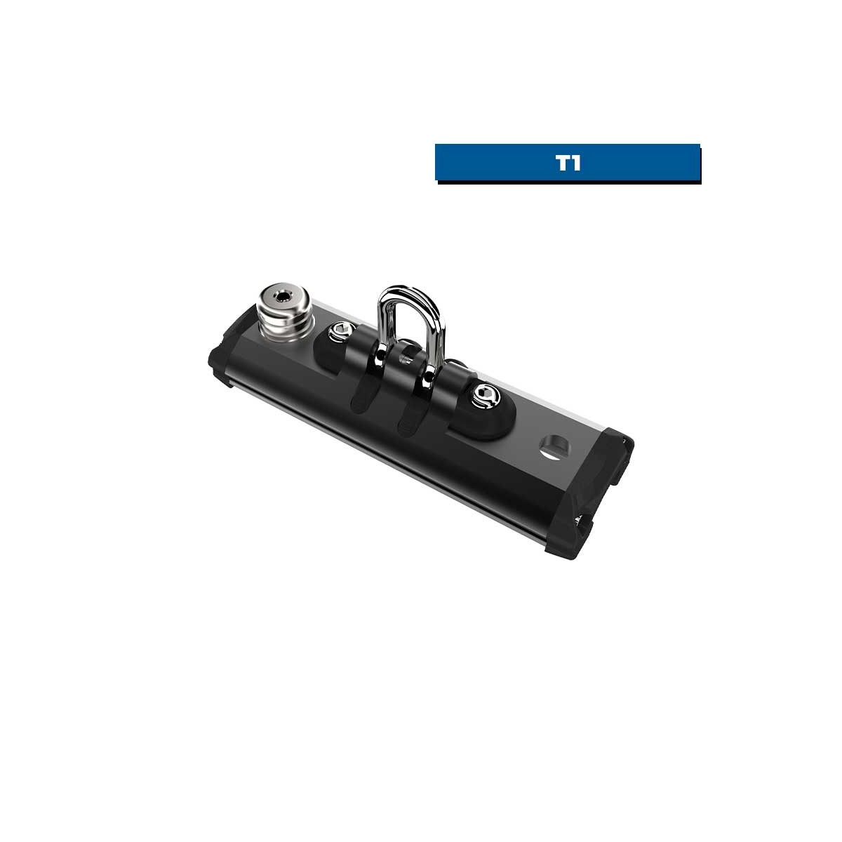 Grillo integrato e pistone di bloccaggioIl grillo integrato garantisce un collegamento pulito e diretto alla scotta. E quando si vuole stabilizzare l'assetto, il pistoncino di bloccaggio blocca rapidamente il carrello al binario. È utile per mantenere un angolo di scotta costante, per fissare il carrello prima di una virata o per evitare movimenti indesiderati quando si alza il vento.