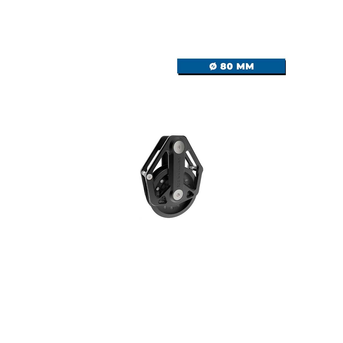 La puleggia da 80 mm ruota attorno a un anello composito impregnato. Una doppia pista di sfere in Delrin sui lati aiuta la rotazione a rimanere libera dalle prime tensioni, mentre il design delle guance limita i rischi di impigliamento durante le strambate e le manovre veloci.