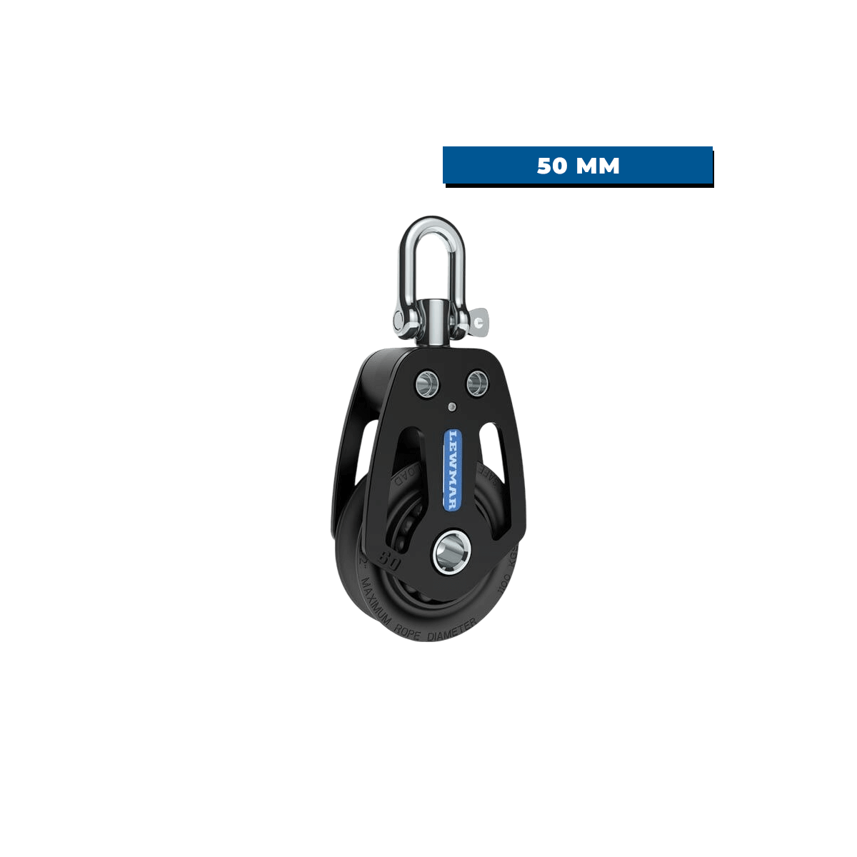 A partire da 450 kg, la puleggia in acetale diventa autolubrificante-, migliorando ulteriormente la fluidità all'aumentare della tensione. La puleggia, ispirata alla gamma Lewmar Racing, può essere bloccata da un grano per mantenere l'orientamento desiderato. Con un carico di lavoro di 800 kg e un peso di soli 135 g, questo bozzello singolo da 50 mm è una scelta solida per un sartiame ad alte prestazioni e di lunga durata.