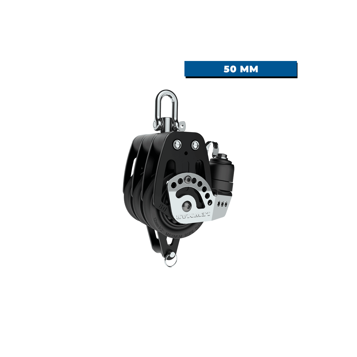 Progettata da Lewmar, la puleggia tripla HTX da 50 mm con anello e tacchetta è ideale per regolazioni frequenti in presenza di tensioni elevate. Flange in alluminio, pulegge in acetale e cuscinetti ottimizzano la rotazione. Con un peso di soli 511 g, è in grado di sostenere un carico di lavoro di 800 kg e la galloccia di 120 kg.