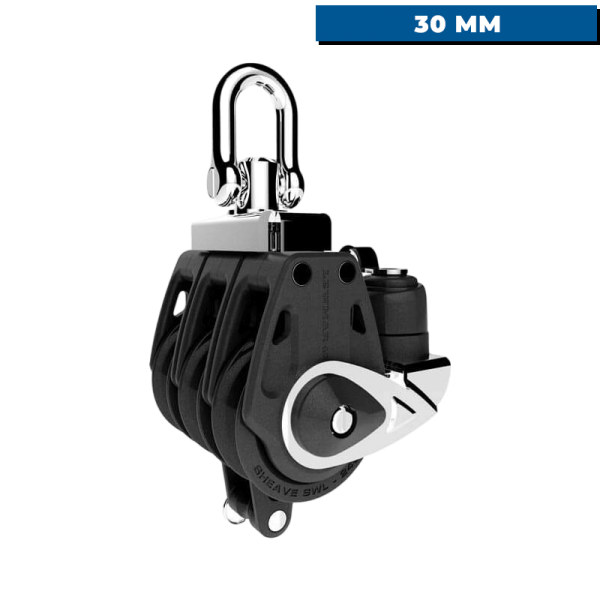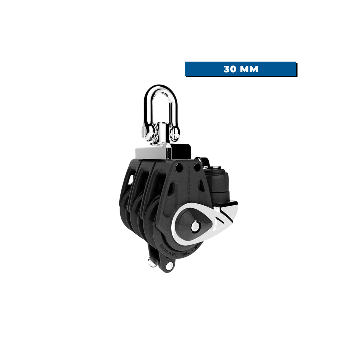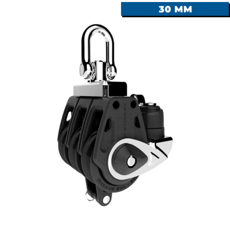 Il bozzello triplo Lewmar Control con anello e galloccia, dotato di pulegge da 30 mm, ottimizza il trimming manuale e il controllo della corda su derive e piccole imbarcazioni da crociera. Con un peso di 140 g, può supportare un carico di lavoro di 500 kg sul lato del bozzello, mentre la galloccia è dimensionata per 120 kg. Il cuscinetto a sfera in acciaio inox riduce l'attrito e il design a fibra lunga MRT è resistente agli urti e facile da risciacquare.