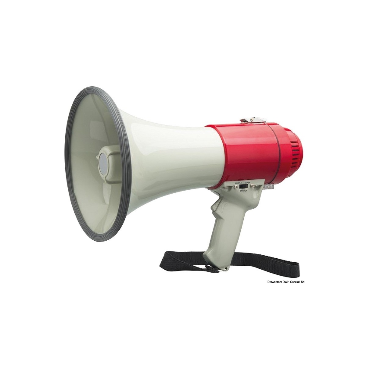Strumento versatile con funzioni integrate di megafono, sirena e fischietto. Con una portata di 350 metri nelle aree urbane e fino a 1000 metri all'aperto, garantisce una comunicazione efficace su lunghe distanze. Alimentato da sei batterie di tipo C (1,5 V LR14), ha un'autonomia di circa 8 ore. Compatto e leggero, è ideale per le situazioni in cui è necessario un suono chiaro e potente.