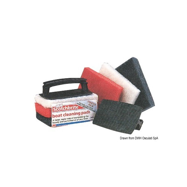 Sistema di impugnatura e pad per rimuovere ruggine, incrostazioni e vernice dalle superfici metalliche e lucidare le superfici ruvide. Per la pulizia di ancore, eliche e scafi.