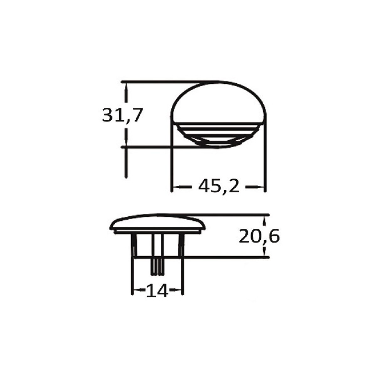 Luce di cortesia dall'installazione discreta e dall'elegante illuminazione a LED blu, con corpo in tecnopolimero bianco e tenuta stagna (IP65), funzionante a 12 V.