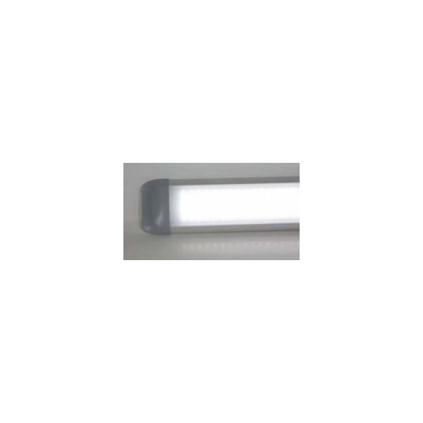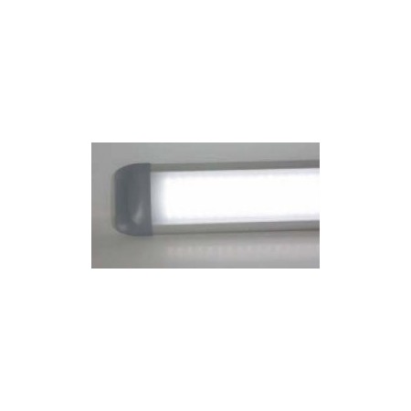 Profilo in alluminio, testate in plastica grigia, copertura in policarbonato