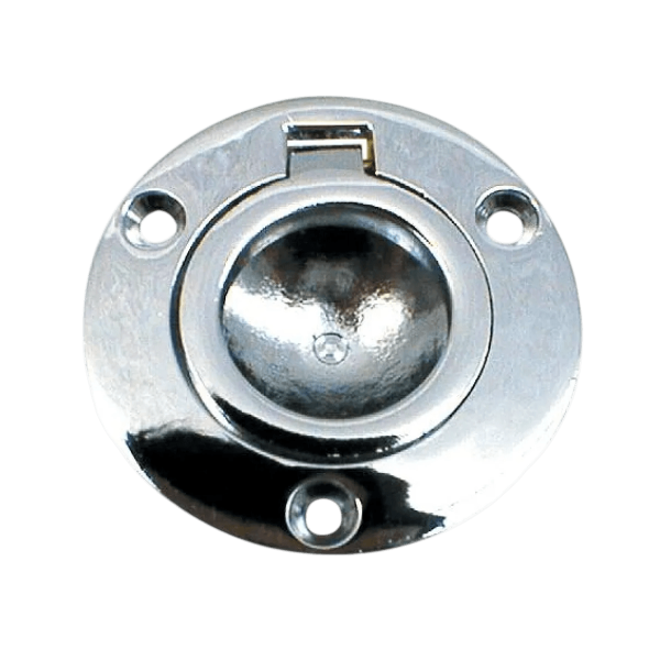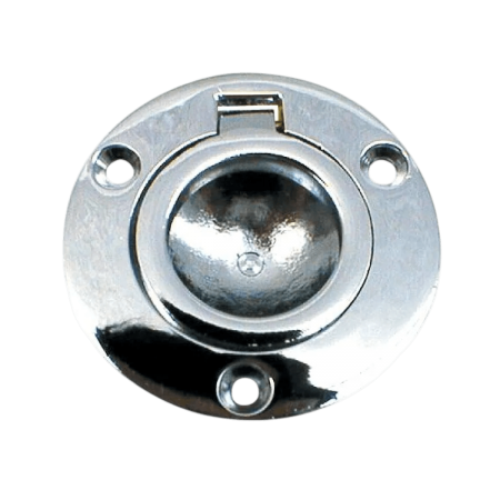 Questo alzapannelli-in ottone cromato Ø60 mm, venduto in confezioni da 10, facilita l'apertura di pannelli e coperture a bordo, garantendo una finitura ordinata. Resistente all'ambiente marino, è una soluzione affidabile per il montaggio o la sostituzione di accessori nautici.