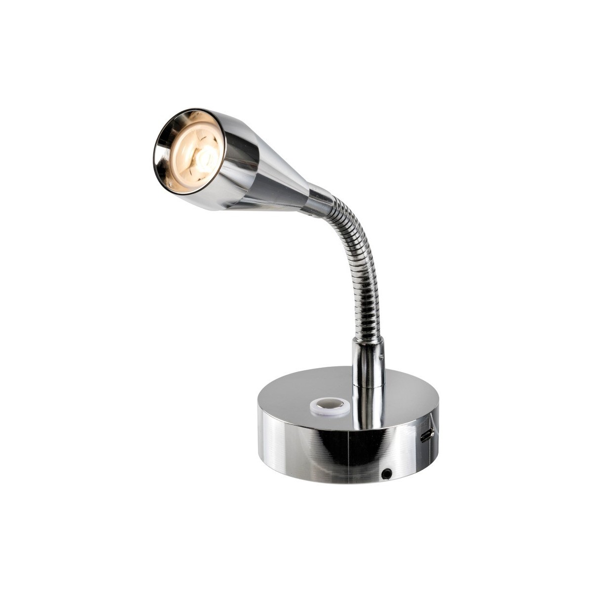 Questo faretto LED ha un design raffinato in alluminio lucido ed è lungo 180 mm. Funzionante a 12 V con una potenza di soli 2 W, eroga una calda luminosità di 270 lumen a 3.200 K. È dotato di un interruttore sensibile al tocco con dimmer e luce notturna blu, oltre che di una porta USB-C da 2 A.