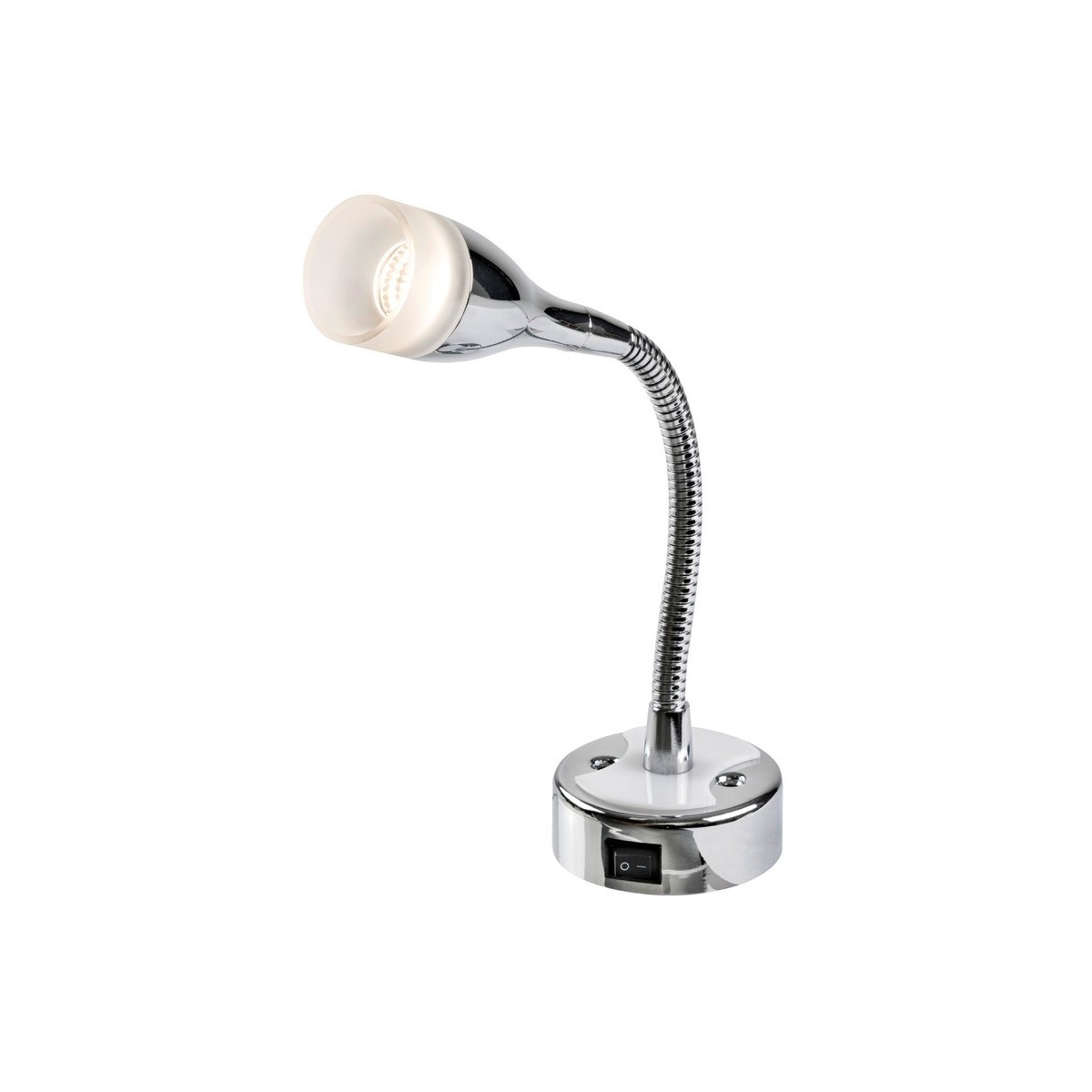 La lampada regolabile a LED presenta un design lucido e 400 mm di articolazione flessibile. Realizzata in alluminio cromato e dotata di una porta USB-C da 2 A, funziona a 12 V per 2 W e fornisce 290 lumen a 3.000 K, con un interruttore ON-OFF integrato per un uso intuitivo.