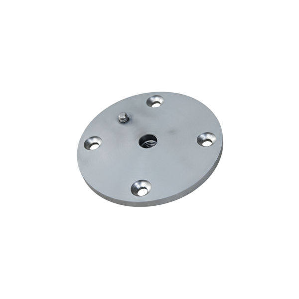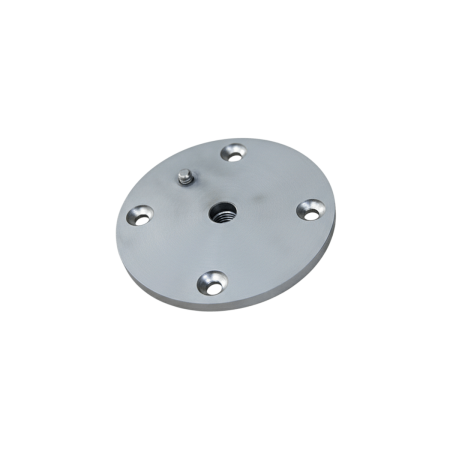 Staffa fissa con piastra per verricello Sardamatic. Realizzata in acciaio inox, si fissa saldamente all'imbarcazione con viti. Il foro centrale filettato da 10 mm assicura un montaggio affidabile e stabile, ideale per la pesca in mare e per le installazioni di lunga durata.