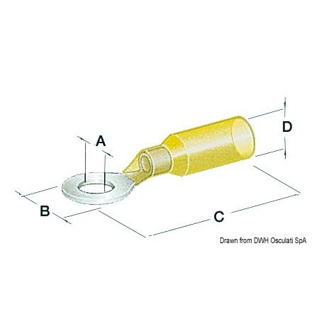 Terminali ad occhiello pre-isolati 5,3 mm gialli impermeabili (x50).