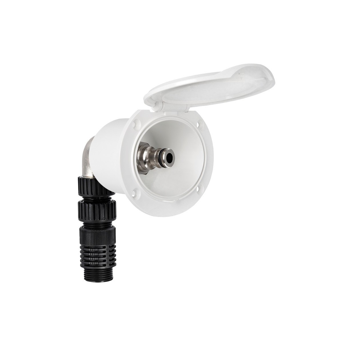 Presa d'acqua per il collegamento costante alla rete idrica del porto o del campeggio senza dover riempire il serbatoio, per barche, roulotte e campeggi-auto.