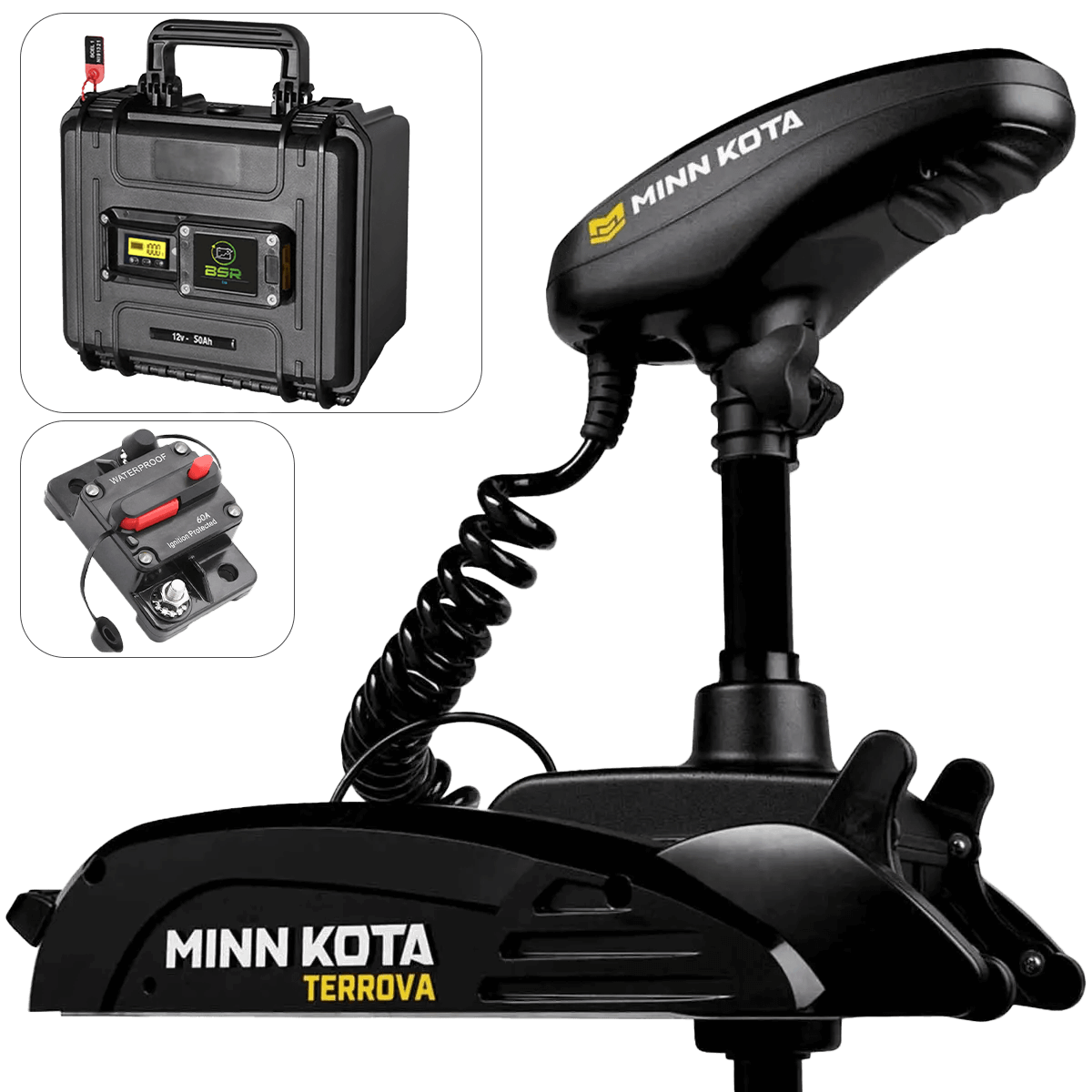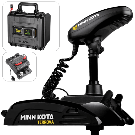 Comptoir Nautique vi offre questo pacchetto completo che comprende un motore elettrico anteriore Minn Kota Terrova GPS 55 Lbs - 137 cm - 12V e una batteria al litio BSR Eco 12V 50A.