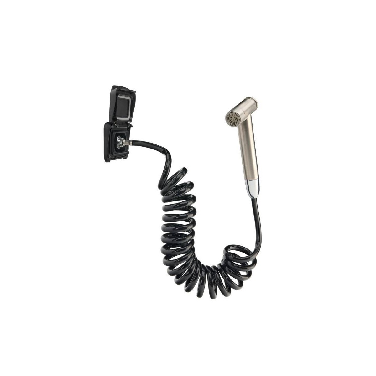 -Il kit comprende un tubo flessibile in PU a spirale da 3 m e una doccetta in acciaio inox con getto regolabile e blocco on/off con ingresso 1/2 BSP, grado di protezione IP68-IP69K e pressione massima di 8 bar.