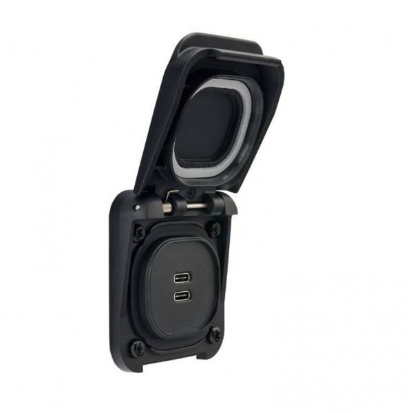 Progettata per la ricarica rapida QC e Power Delivery, preleva l'alimentazione da un sistema a 12 V o 24 V e adatta automaticamente la potenza in base al dispositivo collegato. Con un coperchio chiuso, il pannello frontale è impermeabile fino a IP68-IP69K, il che lo rende ideale per l'uso in barca e in furgone.