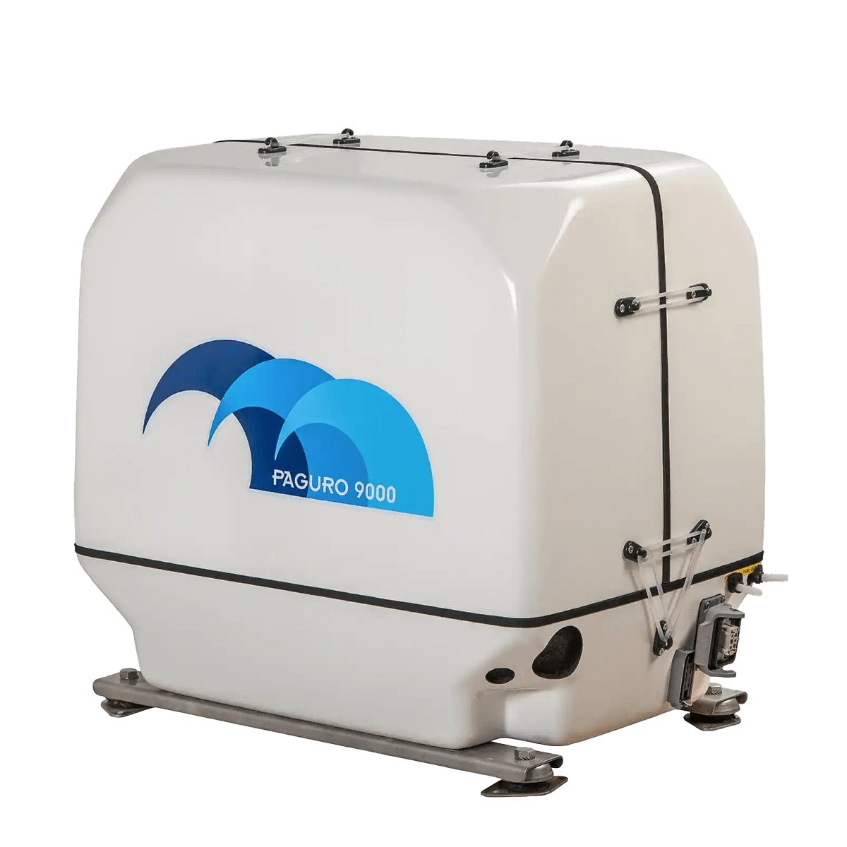 Il Paguro 9000 VTE è un generatore marino da 9 kVA (8 kW) a 230V a 3000 giri/min, alimentato da un motore Lombardini LDW 702 e da un generatore brushless raffreddato ad acqua.