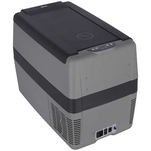 Può essere alimentato a 12V/24V o a 115V/230V e dispone di un pannello di controllo della temperatura, di robuste maniglie e di un cestino interno.