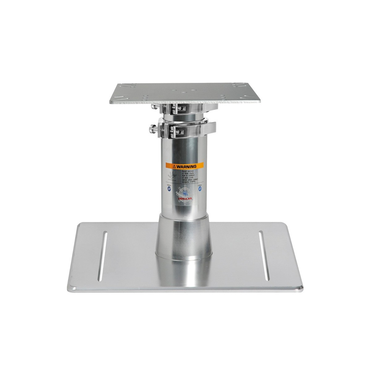 In alluminio lucidato a specchio e anodizzato. Morsetti in acciaio inox per un supporto stabile e robusto del tavolo. Con molla a gas per il sollevamento. Non è necessario forare il pavimento per l'abbassamento. Tri-telescopico. Base in alluminio lucidato e anodizzato con fori svasati per il fissaggio e lo scorrimento sul pavimento.