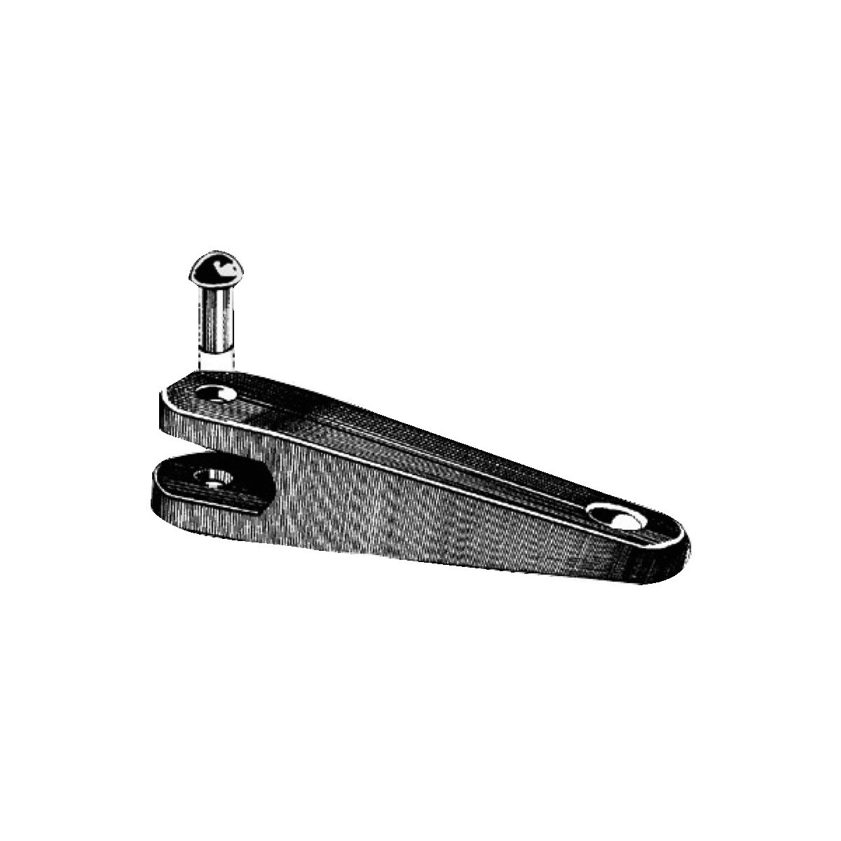 In alluminio anodizzato nero. Sostituisce le pinze originali in plastica che si rompono facilmente. Con perno di montaggio in acciaio inox (rif. originale OMC A-391421)