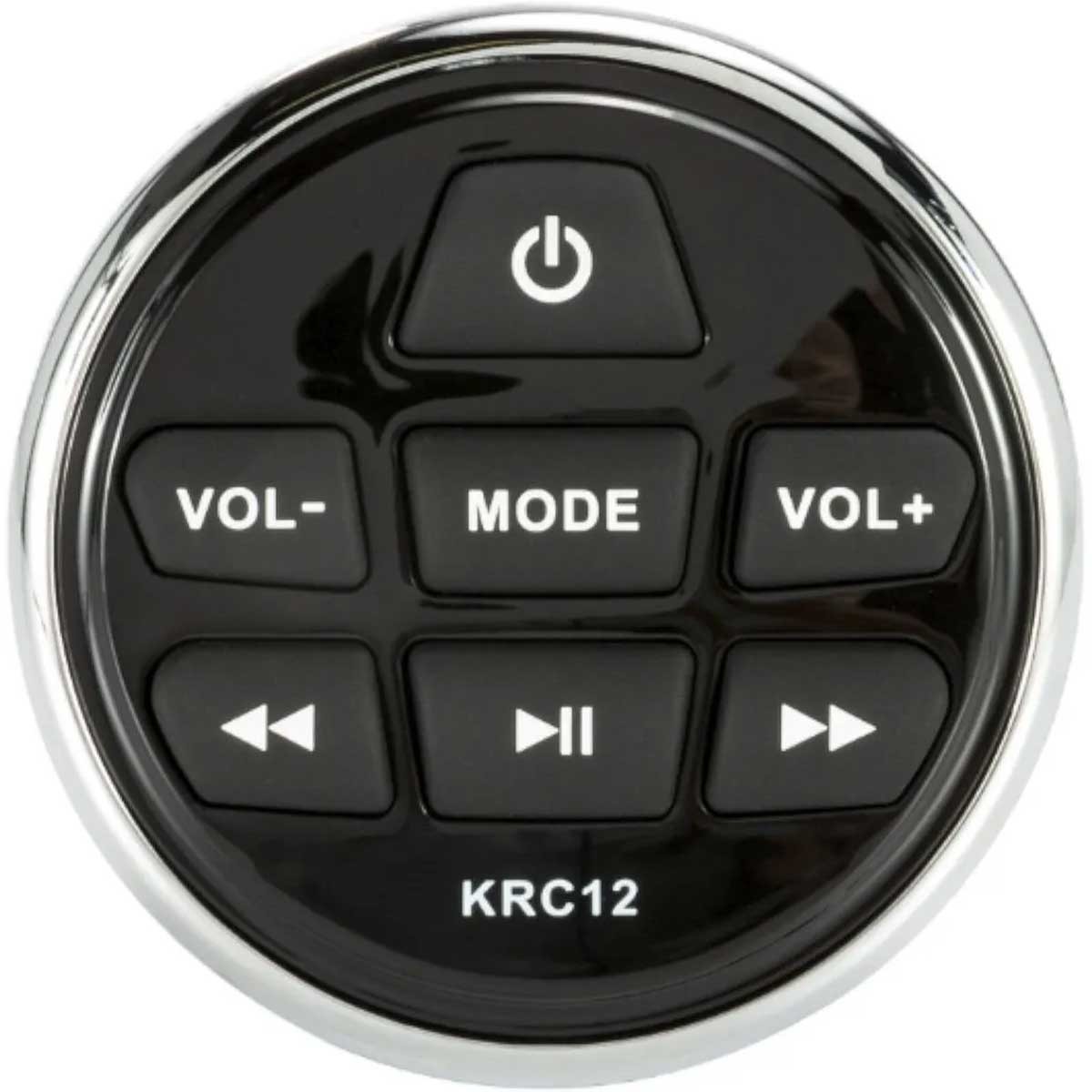 KICKER KRC12 è un display remoto cablato per controllare la radio KMC da qualsiasi punto dell'imbarcazione. Grazie ai suoi comandi dedicati, è possibile gestire volume, sorgente, tracce e stazioni con un semplice gesto.