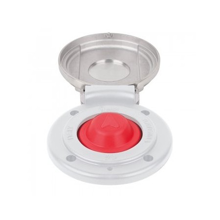 Interruttore a pedale con coperchio di protezione bianco e base bianca, per montaggio (rosso).