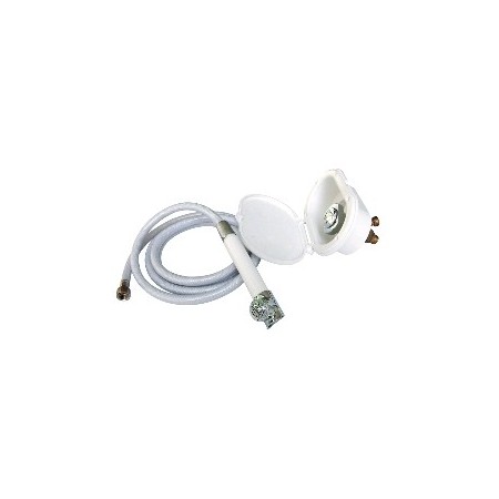 Doccia a pulsante. Miscelatore per acqua fredda o calda. Con supporto in ABS bianco e copertura in PVC impermeabile.