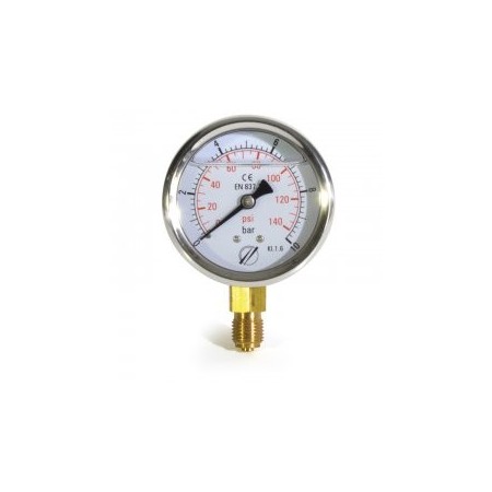 Manometri meccanici a glicerina in acciaio inox AISI 304. Misura la pressione di qualsiasi fluido liquido che non sia altamente viscoso o corrosivo per le leghe di rame e stagno. Impermeabile.