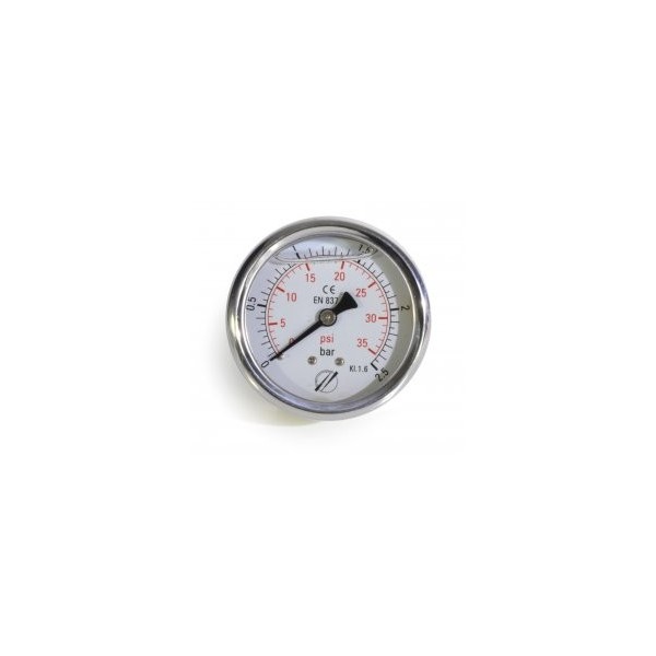 Manometri meccanici a glicerina in acciaio inox AISI 304. Misura la pressione di qualsiasi fluido liquido che non sia altamente viscoso o corrosivo per le leghe di rame e stagno. Impermeabile.