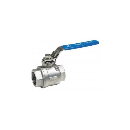Corpo e sfera in acciaio inox 316. Maniglia e viti in acciaio inox 304.
