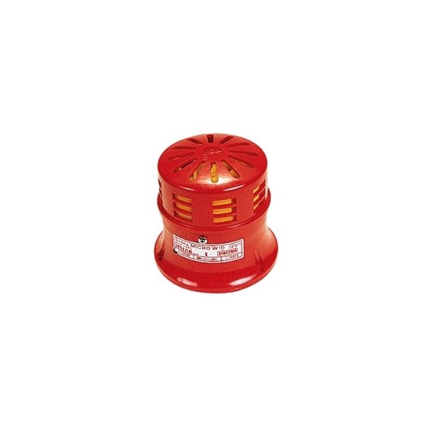 Sirena a montaggio piatto da 24 V. Cons. 10w. Diametro 84 mm, profondità 76 mm.