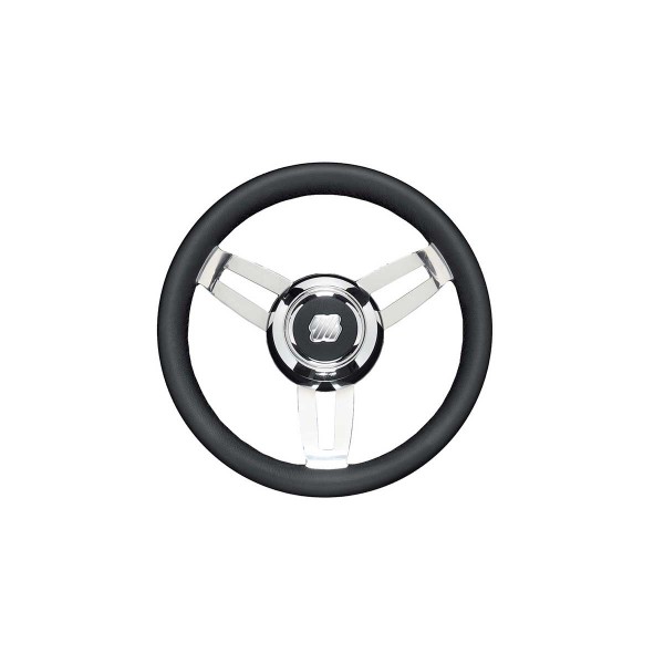 È dotato di 3 razze in acciaio inox e di un' impugnatura in pelle cucita a mano. È inoltre dotato di un foro da 3/4" con mozzo cromato incluso.