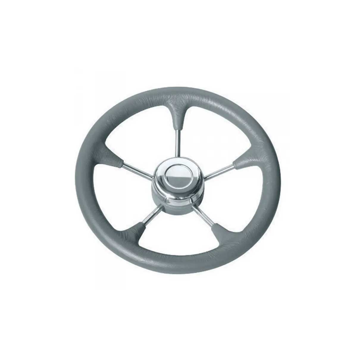 Il volante T9R in poliuretano grigio morbido con razze in acciaio inox è dotato di un cono universale per la compatibilità con i cavi Ultraflex, Morse o Teleflex.