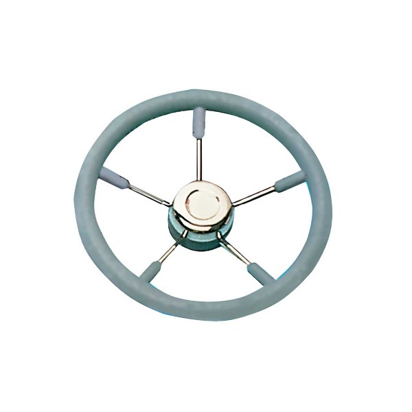 Il volante T9 con razze in acciaio inox e poliuretano morbido grigio ha un cono universale per la compatibilità con i cavi Ultraflex, Morse o Teleflex.