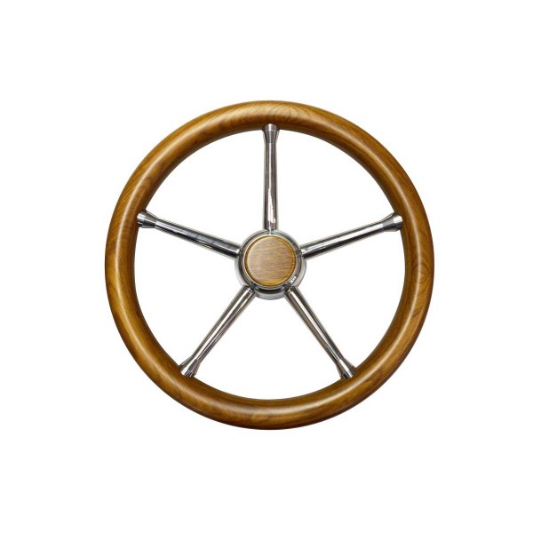 Il volante in teak T17 Ø 35 cm con 5 razze in acciaio inox si adatta perfettamente alla vostra console di governo.