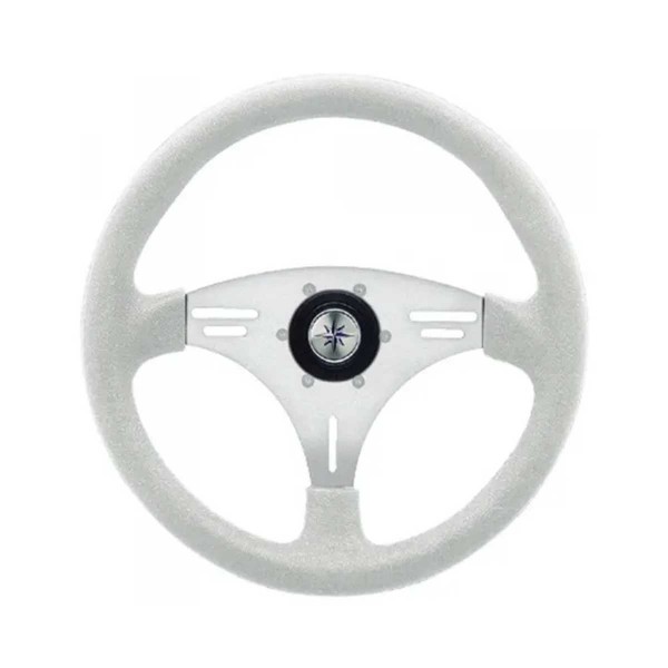 Il volante Manta bianco con razze in alluminio anodizzato, corona in morbido polimetano e finitura argentata aggiunge un tocco di eleganza e modernità alla vostra imbarcazione.