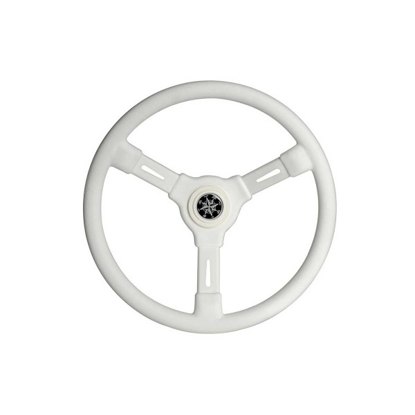 Il volante anatomico bianco a 3 razze ha un mozzo centrale con cono universale e un diametro esterno di 35,5 cm per una versatile installazione a bordo.