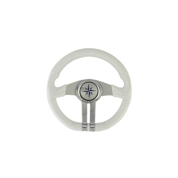 Il volante Baltic bianco è realizzato in poliuretano morbido con finitura satinata e raggi in lega leggera cromati.