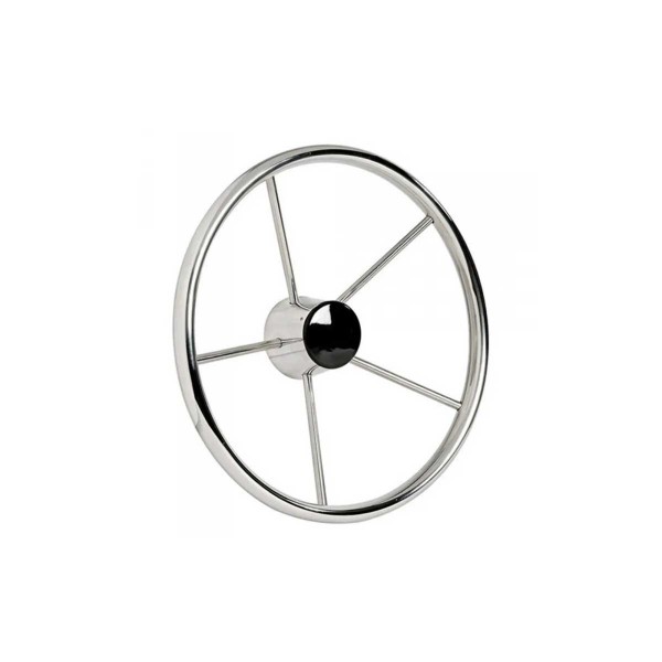 Il volante a 5 razze in acciaio inox lucidato a specchio da 38 cm conferisce alla vostra imbarcazione un look moderno. La sua corona ovale facilita la presa durante le manovre a bordo.