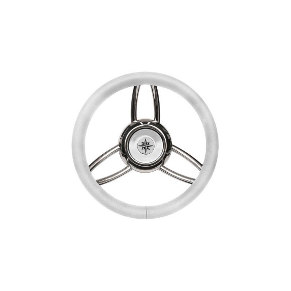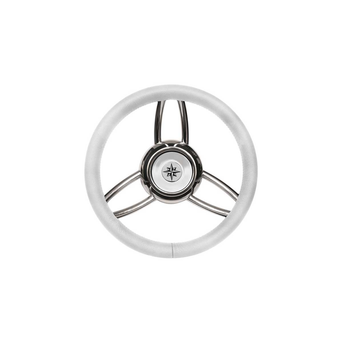 Con la sua struttura in acciaio inox lucidato e la corona in morbido poliuretano bianco rifinita in finta pelle-con cuciture interne, il volante Blitz è un design elegante e moderno per il vostro pozzetto.