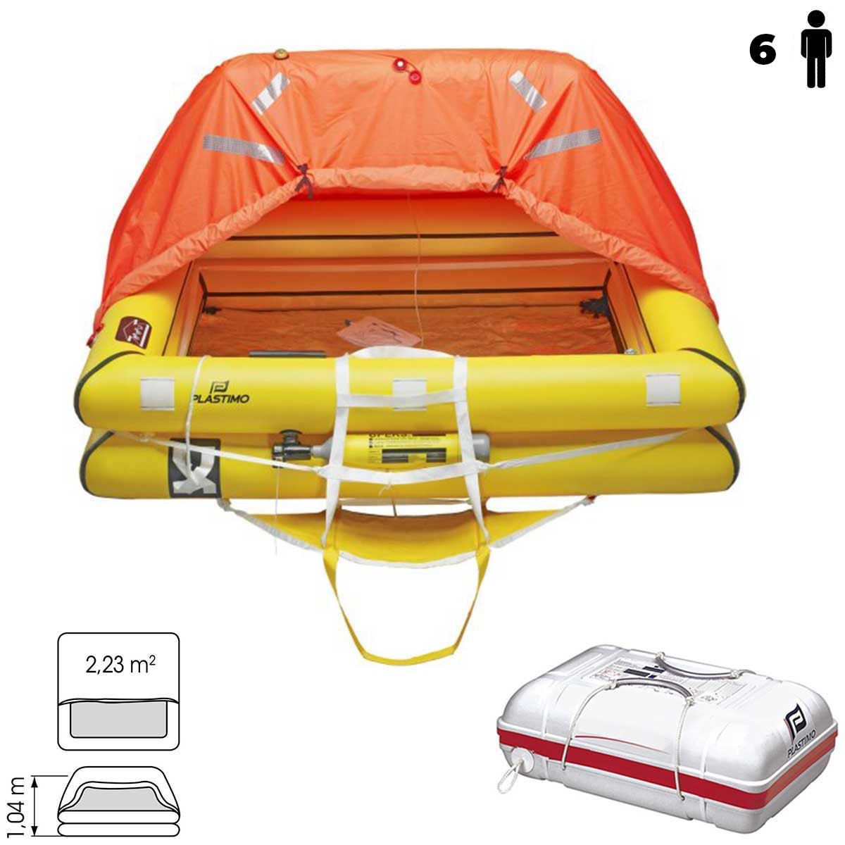 La zattera di salvataggio TransOcean Plastimo è basata sulle specifiche OSR ed è particolarmente adatta alle regate oceaniche, anche in condizioni estreme. Stivata in un container, questo modello di zattera è progettato per 6 persone, ma è disponibile anche per 4, 8 o 10 persone.